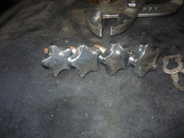 De draaiknopjes van de voorstoelen, opnieuw verchroomd.