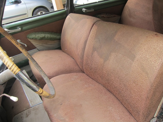Ik kon het niet laten. Het is ook een soort sport om rare dingen voor weinig te scoren. Een trouvaille op LeBonCoin in Bergerac, bij Mien en Mies om de hoek. Onder de neus van Cyrano, ooit achtergelaten na een defect onderweg bij de plaatselijke rommelgarage. Geen papieren. Vert Olive met een bruin helanca interieur. Motor zit vast, maar er zit een extra blok bij.